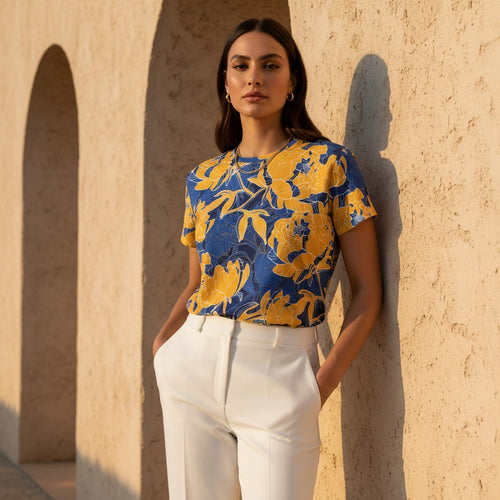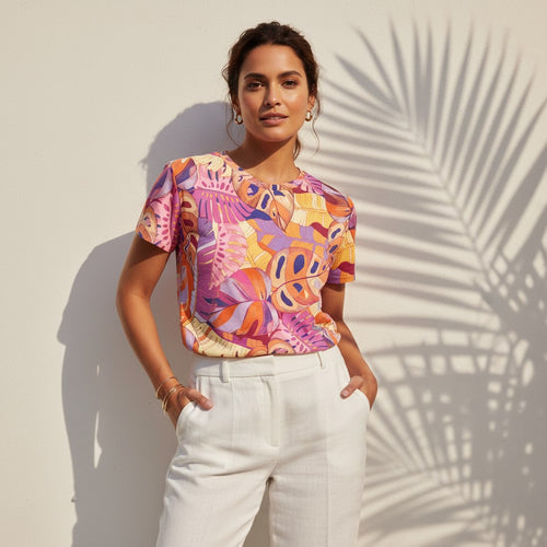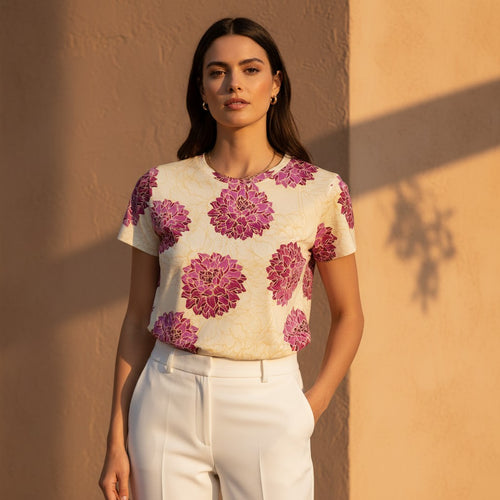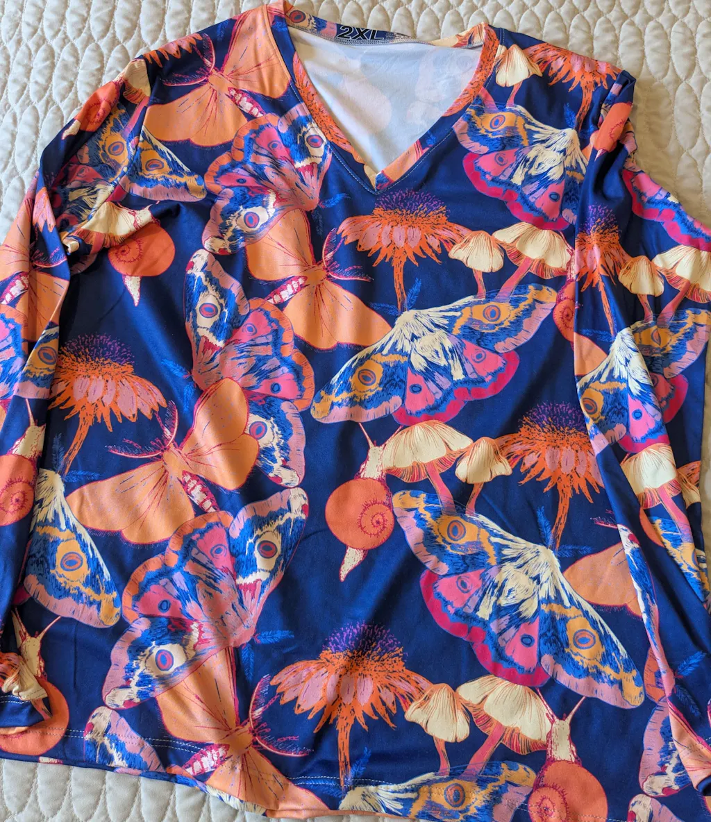 I ordered this shirt along with the Saffron Garden Tee. Both items are excellent, fit perfectly, exquisite quality, comfortable material, and vibrant colors. I love both of them and will definitely purchase again!!! Thank You!!!
